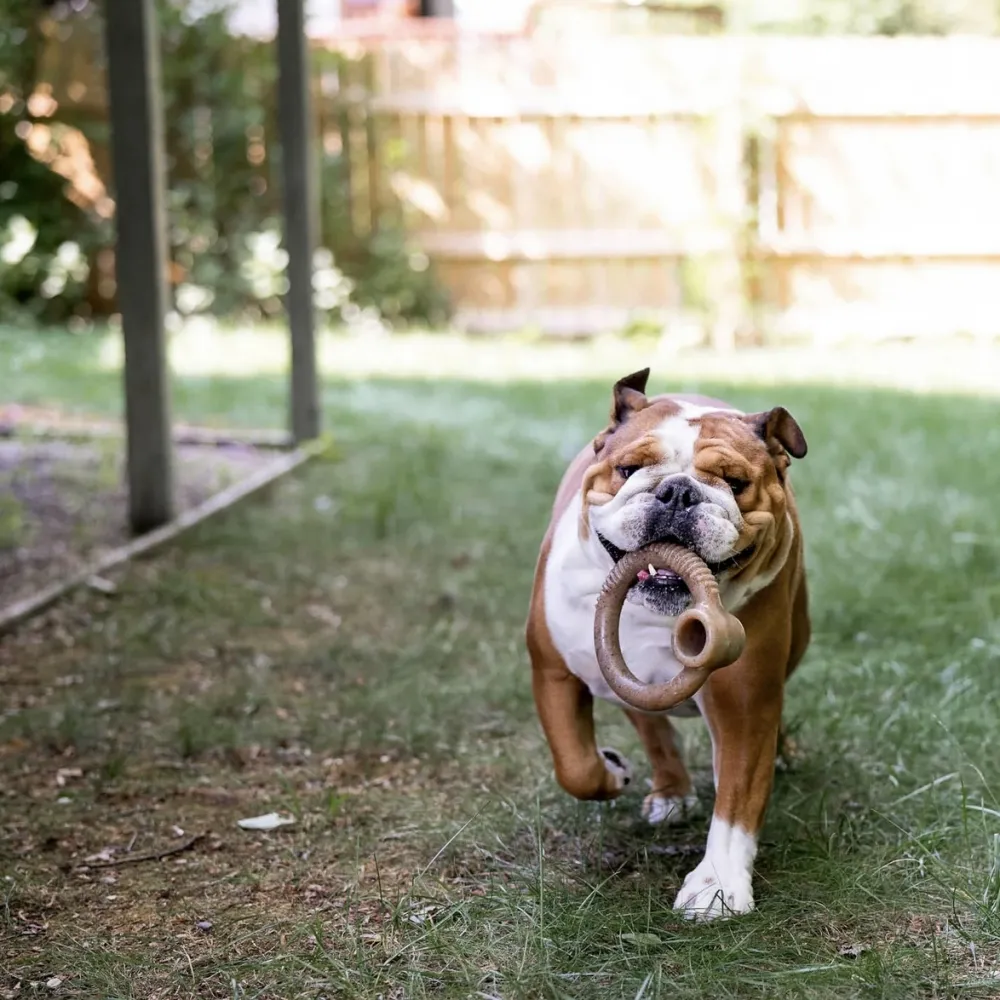 Modo de usar: Ofereça a seu cão para roer sempre que ele esteja em um ambiente relaxado e confortável. Supervisione o tempo todo. Caso consiga arrancar pedaços grandes, descontinue o uso. O produto irá esfarelar e soltar pequenos grânulos. É normal. Caso esses grânulos sejam ingeridos pelo cão, não causarão qualquer problema e tampouco serão digeridos. Não ofereça a cães idosos e caso tenha dúvidas sobe as condições de saúde bucal de seu cão, não ofereça este produto a seu cão, pois pode precipitar problemas com quebra de dentes frágeis e fatura de raízes já comprometidas.
