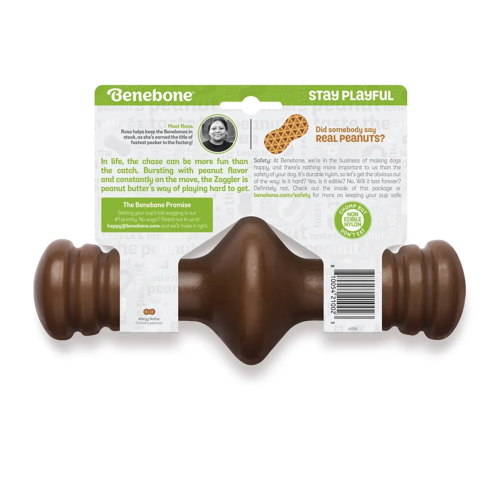 O Benebone Zaggler possui um formato exclusivo e não importa como seu cão segure, sempre haverá uma ponta para que ele roa com conforto.Além disso, ele gira e pode ser jogado girando para maior diversão. Além disso, seus diferentes ângulos, mantêm o cão entretido por mais tempo, pois ele é estimulado de diversas formas.