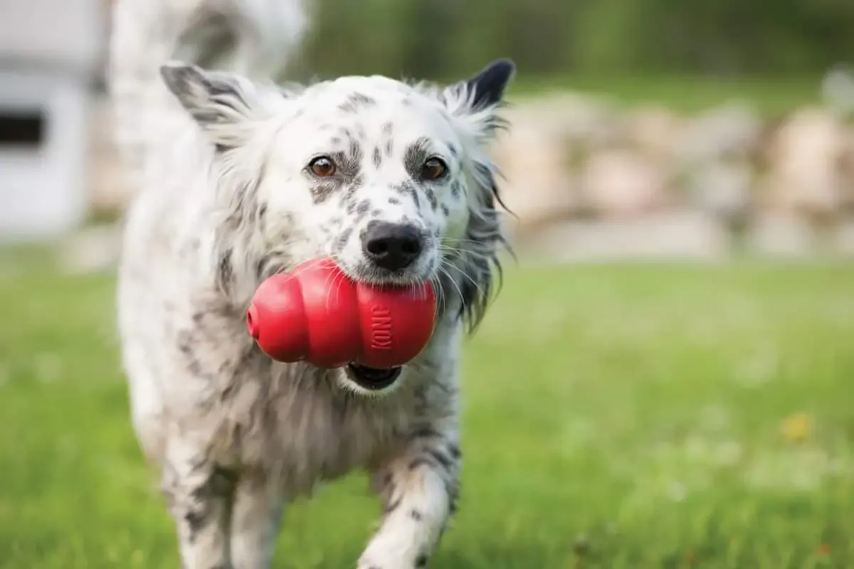 É um Brinquedo interativo que pode ser usado para brincadeiras de jogar e trazer mas principalmente para ser recheado para satisfazer necessidades primitivas dos cães que é trabalhar pelo alimento, morder e lamber. Se usado corretamente pode durar a vida toda do cão. Pode ser congelado para desafios ainda mais interessantes e duradouros. Um cão que passa 30, 40 minutos para tirar um recheio congelado do KONG se cansa a ponto de não ter mais energia para roer e destruir coisas em sua casa. Além de ser exercício físico e mental, preenche o tempo de um cão entediado.