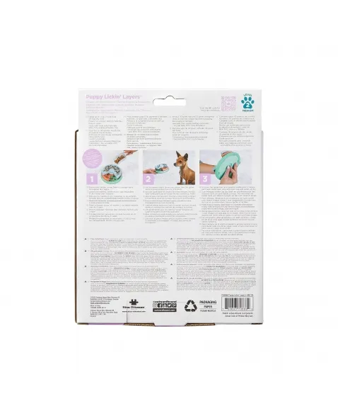 Instruções: 1 – Espalhe ração ou petiscos por todos os compartimentos nos 3 níveis. 2 – Deixe a brincadeira começar! Mostre a seu cão como o brinquedo funciona e encoraje-o a encontrar o alimento. 3 - Para limpar, coloque o jogo de cabeça para baixo e aperte simultaneamente as duas partes da trava para ir soltando cada camada.