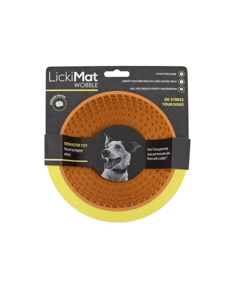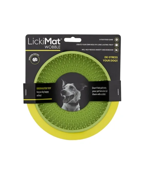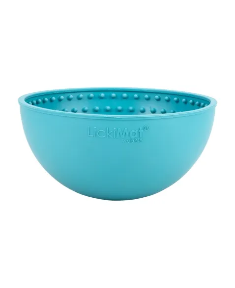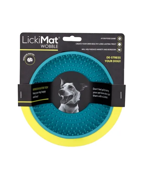 LickiMat Wobble é uma tigela de borracha sem base fixa, feito para girar e divertir, reduzir o estresse, ansiedade e tédio de seu cão. Reduz a velocidade de ingestão de alguns segundos para alguns minutos. Feito 100% de borracha com grau de uso humano. Não contém silicone, BPA, PVC, ftalatos ou qualquer outro material tóxico. Indicado para qualquer cão.