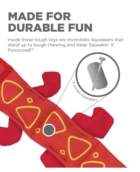 Dedicado à cães de mordida moderada a forte. Construído com o que há de mais resistente pela Outward Hound, tornando-se o brinquedo mais resistente da marca. Possui um liner especial K9, tecido de mangueira de bombeiro e apitos chamados “invincibles” que continuam apitando mesmo que perfurados. Seu corpo achatado e com os apitos encapados tornam um brinquedo ideal para lutas intermináveis e brincadeiras de cabo de guerra. 60cm de pura diversão.